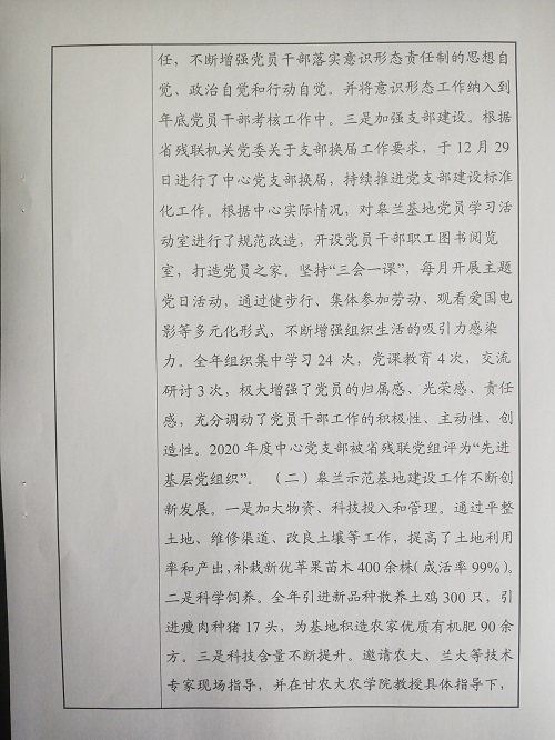 農(nóng)科中心事業(yè)單位法人年度報(bào)告書(shū)來(lái)源:省殘聯(lián)農(nóng)科中心發(fā)布時(shí)間:2021-04-02 切換背景色: 字體大小: 大 中 小 分享到:
