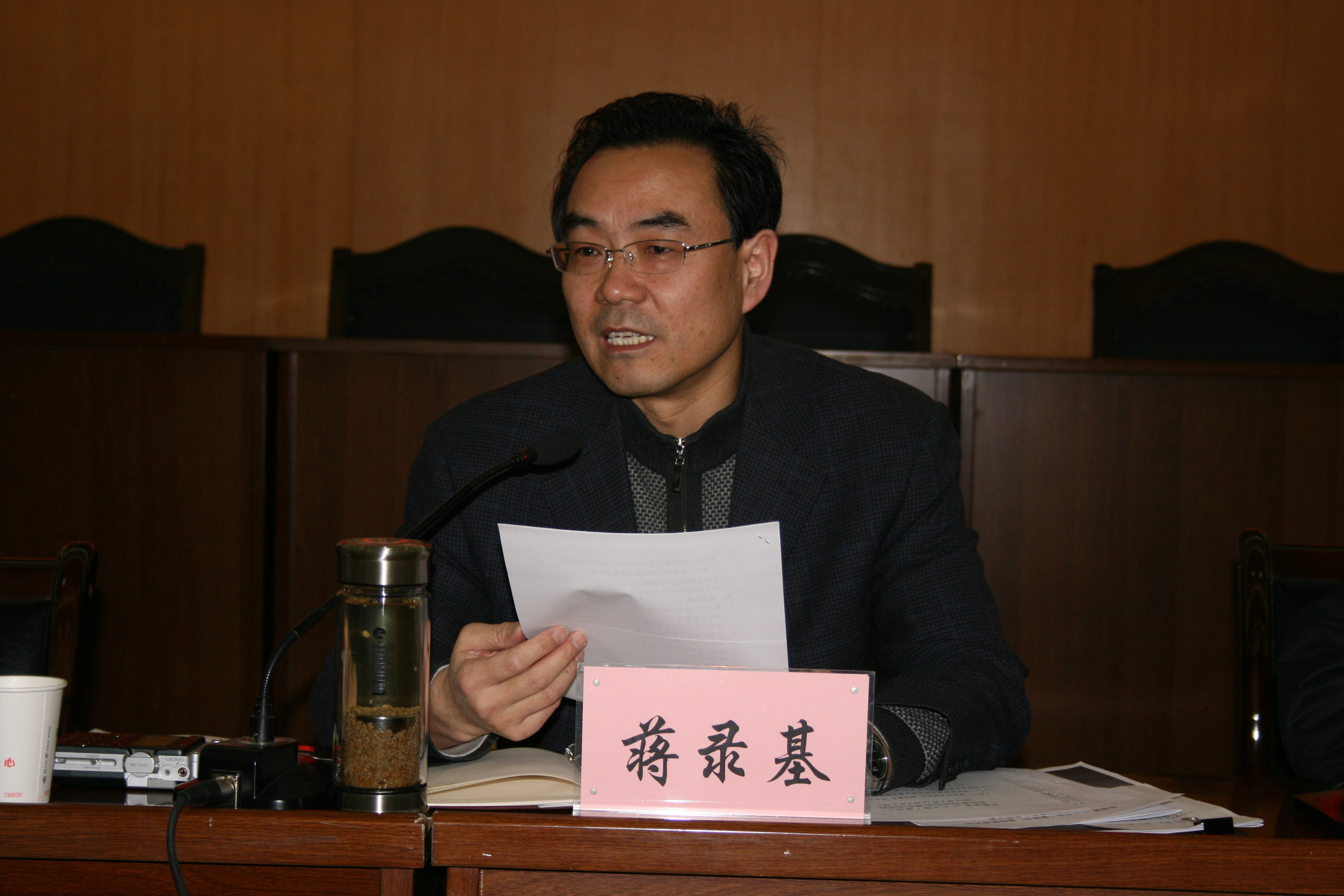 圖為省殘聯黨組成員、副理事長蔣錄基主持會議