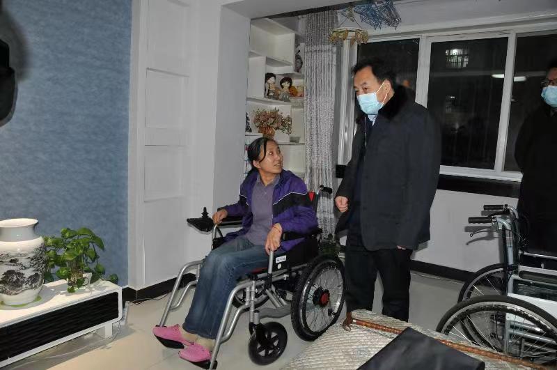 在隴南市慰問結(jié)束后,王建強(qiáng)又驅(qū)車來到天水市秦州區(qū),已是傍晚時分,又連續(xù)走訪慰問了重度肢體殘疾人李佳璇、王巖、王永康,為他們送上電動輪椅等慰問品,并與他們親切交談,詳細(xì)了解他們的生產(chǎn)生活、子女教育、醫(yī)療康復(fù)和各項(xiàng)惠殘政策落實(shí)等情況,鼓勵他們保持樂觀心態(tài),正視生活挫折,樹立生活信心,并鼓勵他們通過自身的努力和社會的幫助,過上幸福美好的日子。同時,他叮囑要牢記總書記要求“民之所憂、我必念之,民之所盼、我必行之”,要高度重視困難殘疾人的生活,時刻把群眾的冷暖放在心上,努力幫助解決實(shí)際困難。