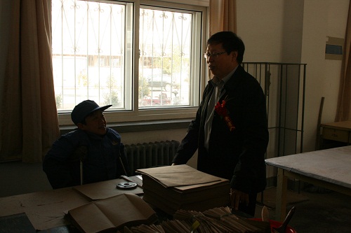 圖為省殘聯黨組書記、理事長姚振華檢查日間照料站工療車間