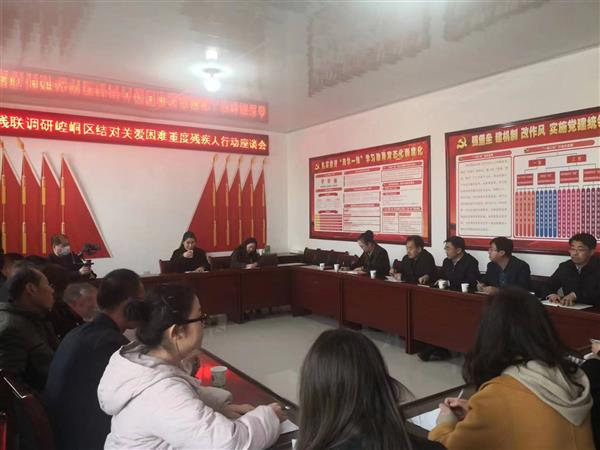 在崆峒區(qū)崆峒鎮(zhèn)高嶺村入戶訪視困難重度殘疾人王杰時,調(diào)研組即興召開了省、市、縣、鄉(xiāng)、村五級座談會,在場各級干部、基層殘疾人專職委員、普通群眾和殘疾人代表圍繞關(guān)愛內(nèi)容、結(jié)對方式、輿情效果等方面踴躍發(fā)言、積極討論,不同思路、意見相互交流碰撞,把調(diào)研工作推向了高潮。