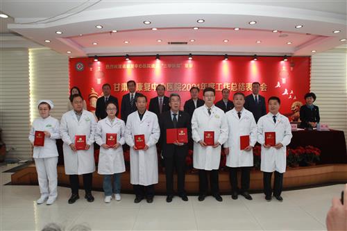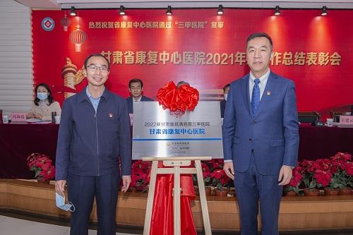 王建強對中心(醫(yī)院)順利通過“三甲”復(fù)審表示熱烈祝賀,并和中心(醫(yī)院)黨委負(fù)責(zé)人王登廷為“三級甲等康復(fù)醫(yī)院”揭牌;宋保才和中心(醫(yī)院)行政業(yè)務(wù)負(fù)責(zé)人王建云為“2022新甘肅最具滿意度三甲醫(yī)院”揭牌。會議對榮獲2021年度全省抗擊新冠肺炎疫情先進個人和先進集體進行表彰;對榮獲中心2021年度先進科室和優(yōu)秀等次人員、“三甲”評審工作先進個人、抗疫先進個人頒發(fā)了獎狀、獎牌。王登廷、王建云分別作了2021年黨委、行政工作報告;中心(醫(yī)院)班子成員分別與各科室簽訂了2022年度目標(biāo)責(zé)任書。