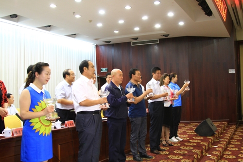 圖為獲得獎(jiǎng)牌榜前八名的代表團(tuán)代表領(lǐng)獎(jiǎng)