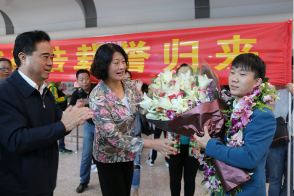 省殘聯理事長華文哲、副理事長張秀麗在中川機場迎接載譽歸來的運動員連浩