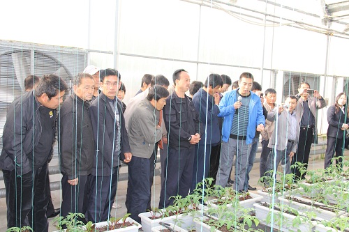 圖為全省第十一期殘疾人農業科技培訓班殘疾人學員參觀天水市農業高新技術示范園區無土栽培技術示范區