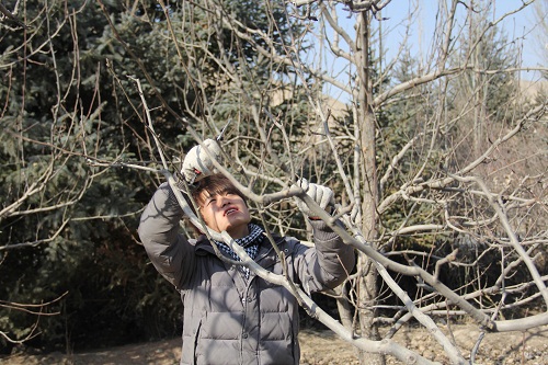 圖為甘農大農學院園藝系的同學正在修剪果樹